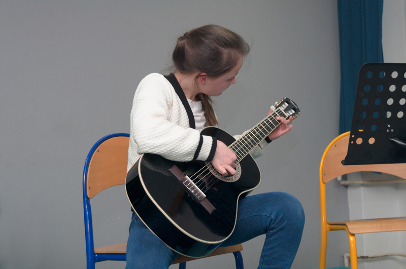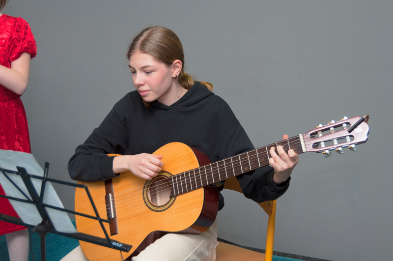 Uljana Litera (4. r., hra na kytaru, žákyně p. učitele V. Dudka) hrála na kytaru skladbičku