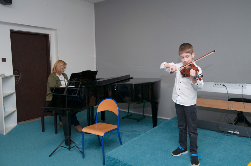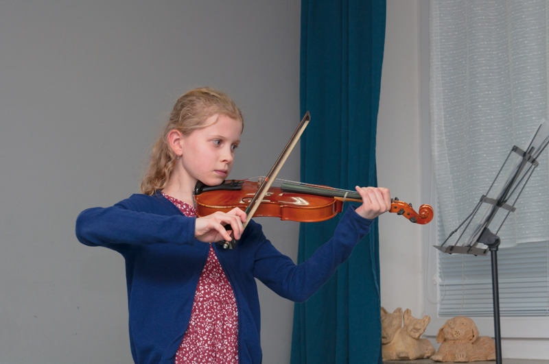 Aneta Barvířová (2. r., hra na housle, žákyně p. učitelky J. Gotfrýdové) hrála skladbičku