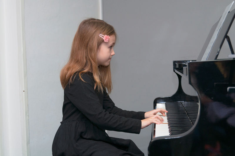 Lea Kořínková (1. r., hra na klavír, žákyně p. učitelky M. Filové Vávrové) hrála melodii písničky „Maličká su“ a skladbičku s názvem První skladbička.
