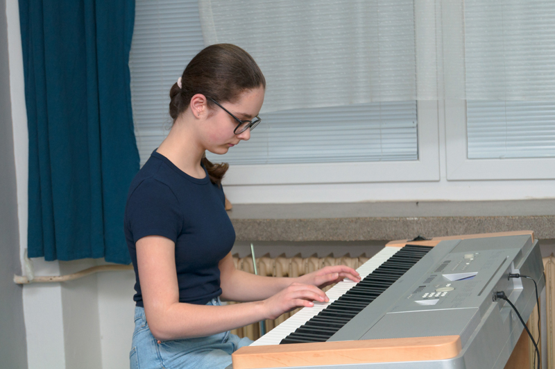 Slavnou ústřední melodii z baletu P. I. Čajkovského Labutí jezero hrála na keyboard Lucie Šplíchalová (4. r., hra na keyboard, žákyně p. učitele Marka Paľi).