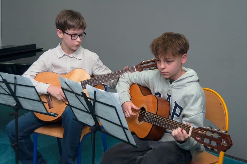 Kytarové duo Tibor Sýkora a Eduard Oršuliak, j.h. (žáci p. učitele V. Dudka) zahráli skladbu C. Methiua Noeska.