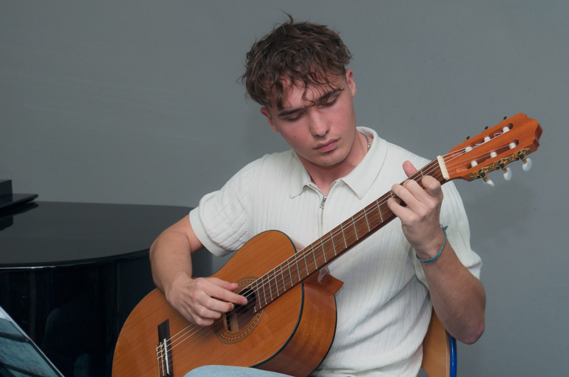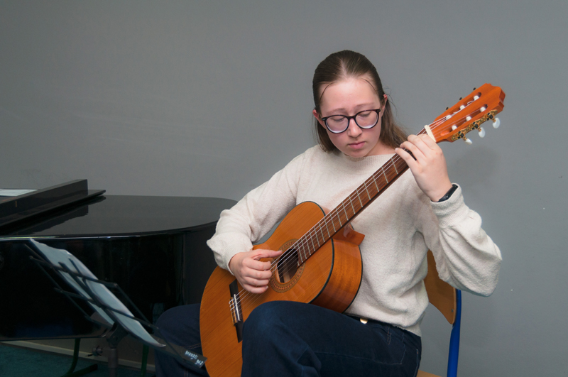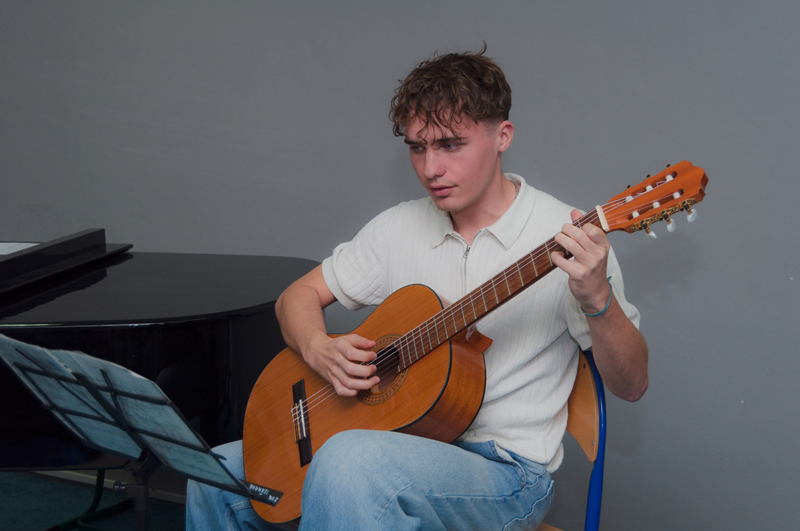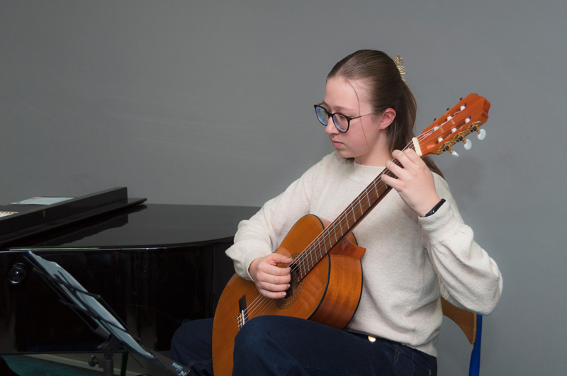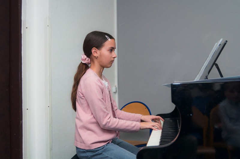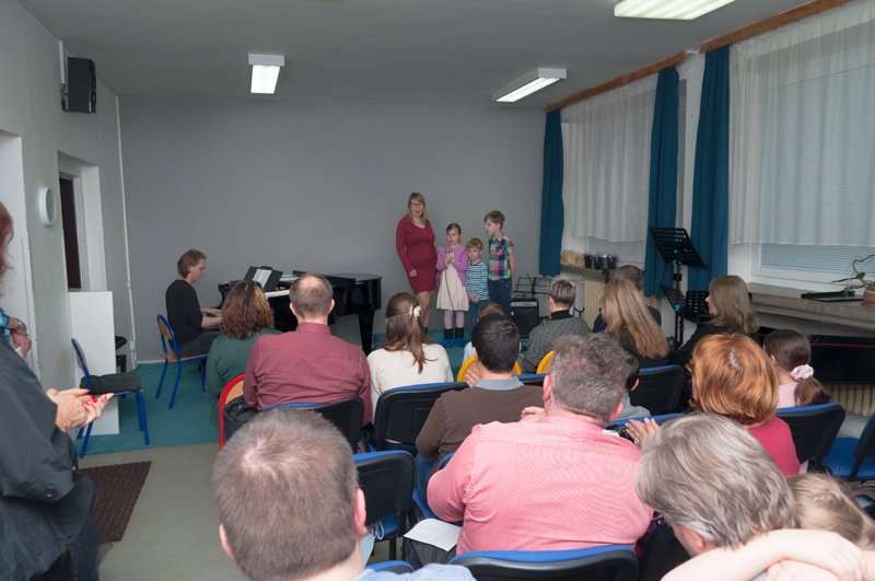 Na pódiu se představili žáci různých ročníků, kteří předvedli své dovednosti ve hře na klavír, kytaru i ve zpěvu.