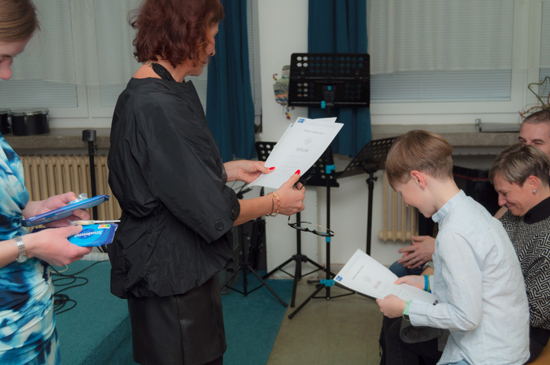 Poděkování patří také pedagogům, kteří žáky na vystoupení připravili – Daliboru Brianu Hanuskovi (hra na kytaru), Monice Vávrové Filové (sólový zpěv a hra na klavír) a Evě Hubáčkové (hra na klavír).