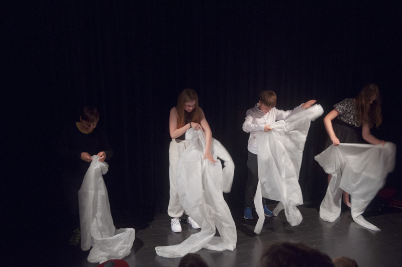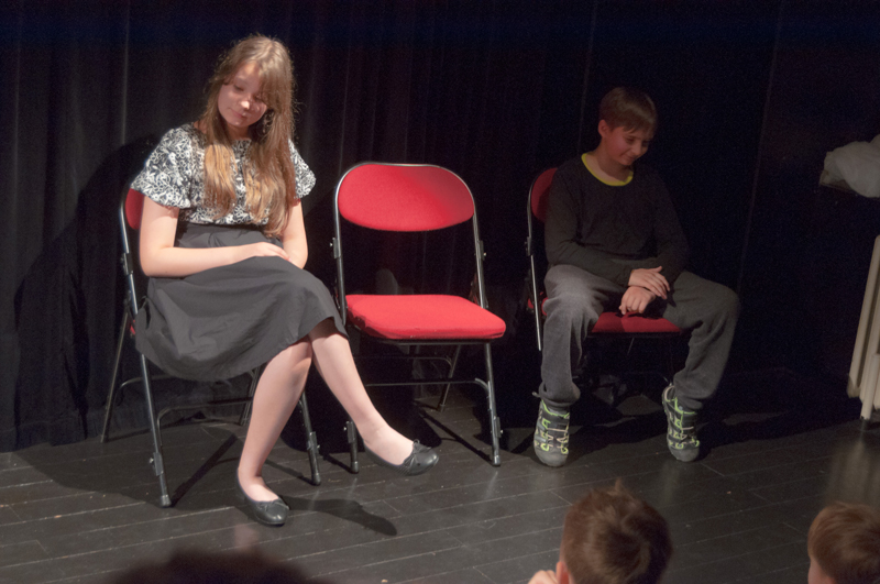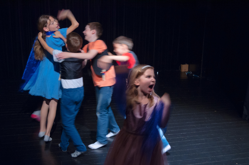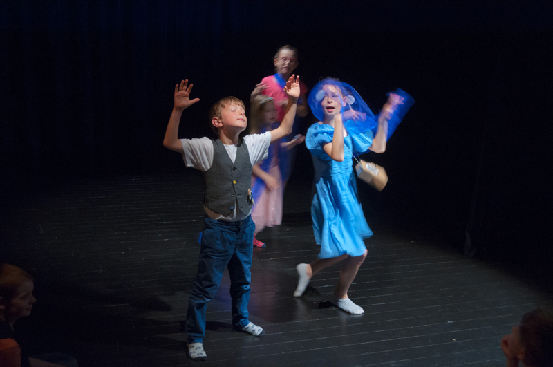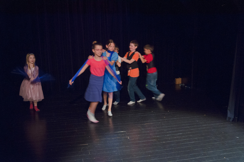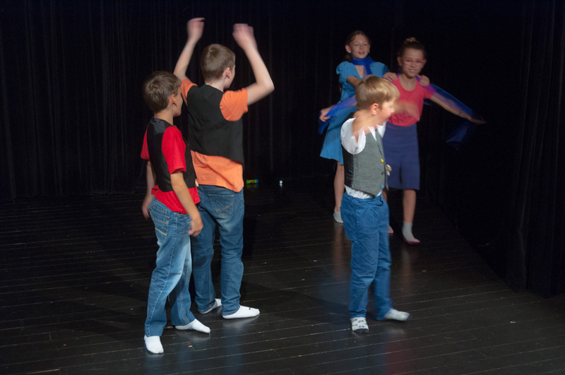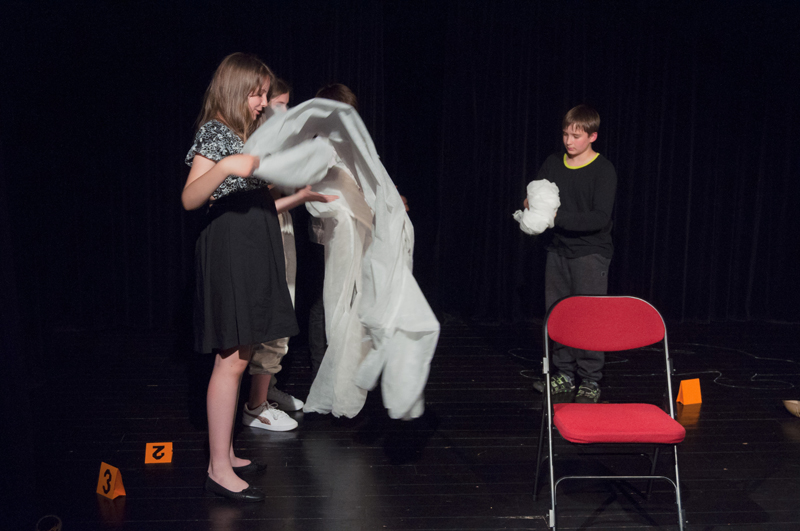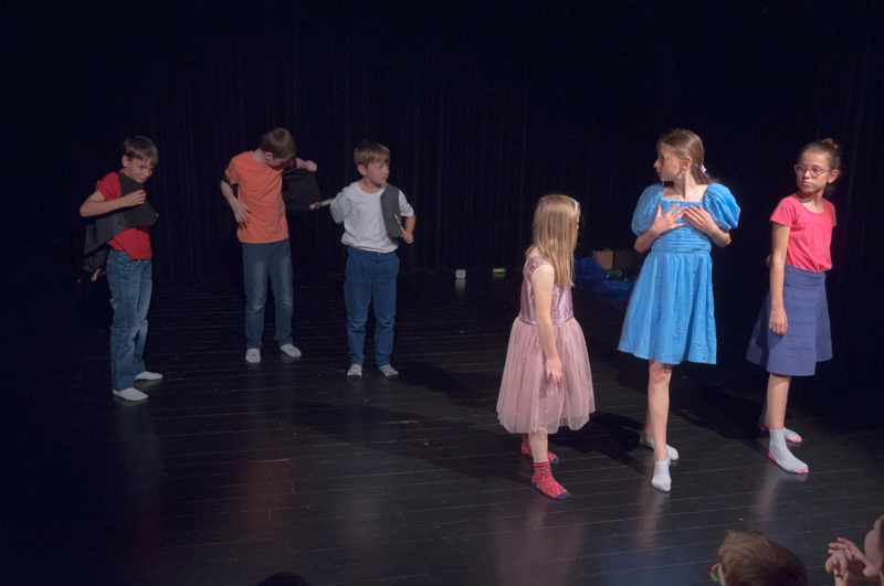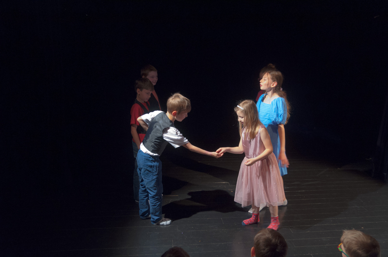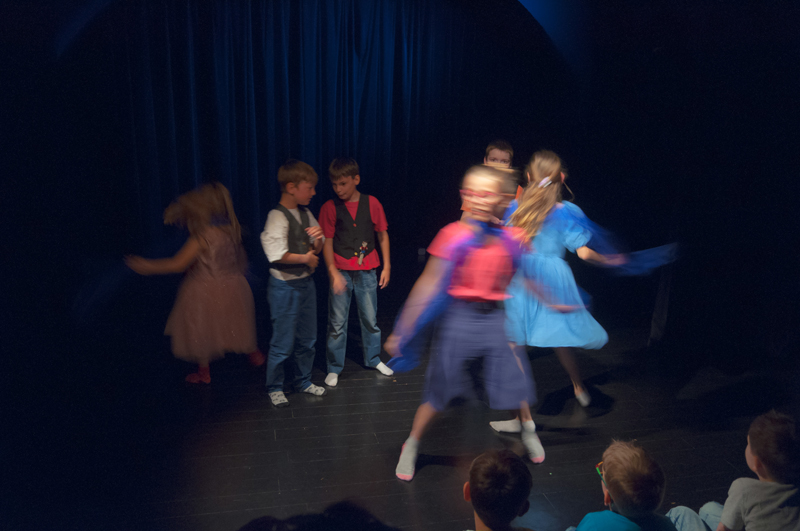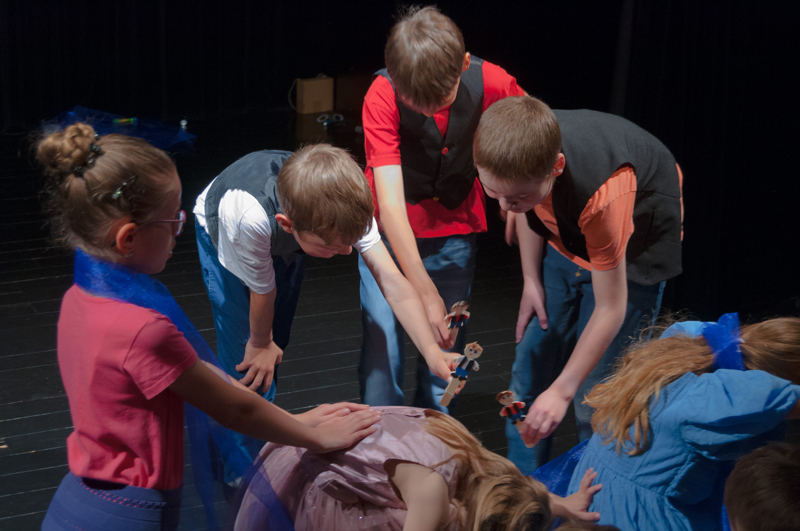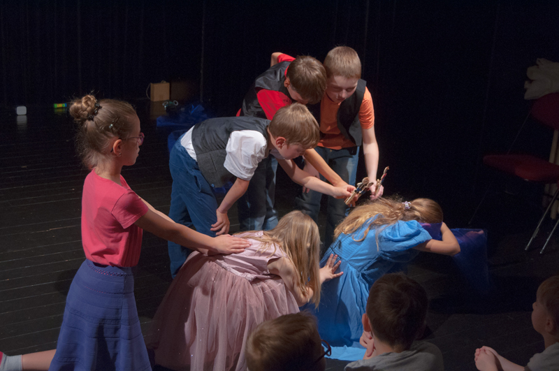 a bubnování". Inspirovali jsme se rýmovanými texty předlohy a s dětmi jsme tak v průběhu roku vymýšleli básně a písně, které poté v představení zazněly. Děti si také vyzkoušely hru
