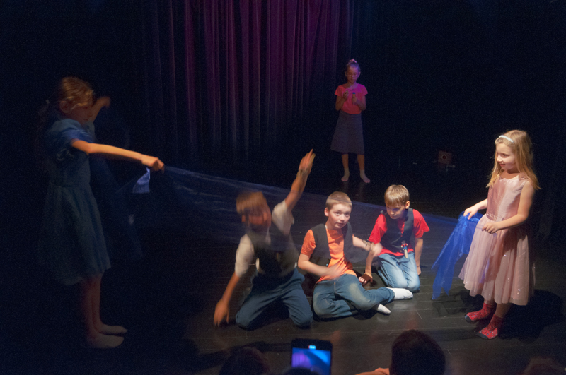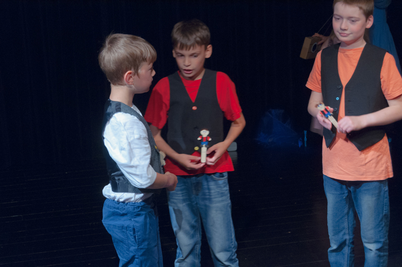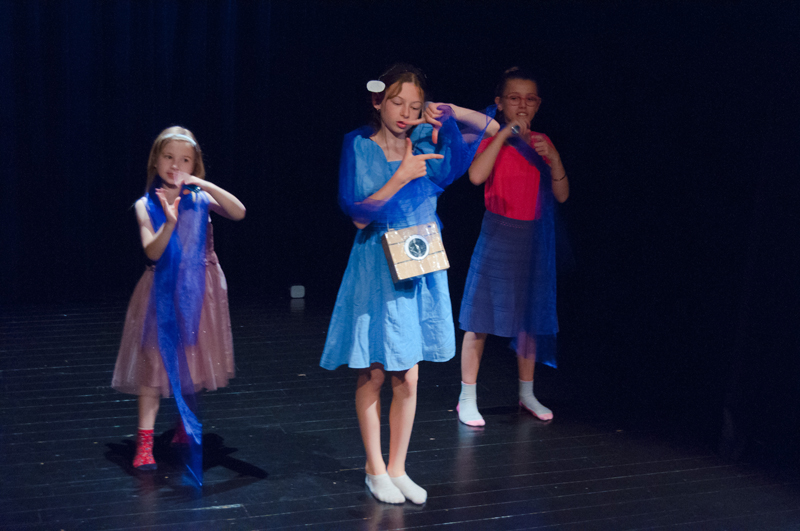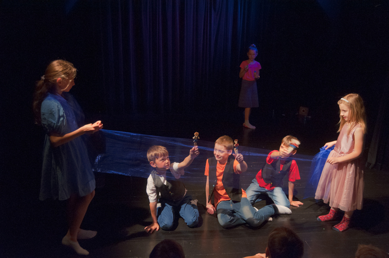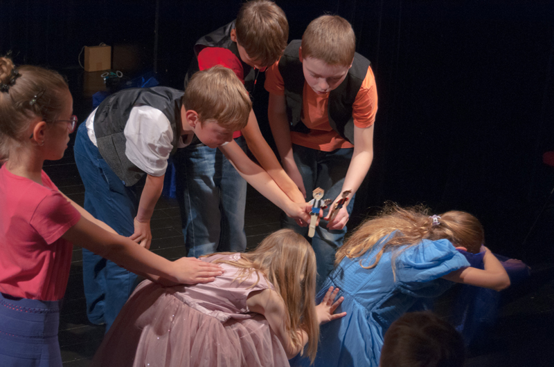 s loutkou a na cestě za dobrodružstvím je provázeli malí loutkoví dvojníci. Skřítky Tyce, Pice a Ryce (známé divákům již z jarního vystoupení) si zahráli chlapci Vít Gelnar, Lukáš Janíček a Filip Jedlička. Dívky Kristýna Zemanová, Michaela Harničárová a Lea Kořínková se představily v rolích princezen, ale také strašidel a příšeráků, kteří skřítkům připravují na cestě nejrůznější nástrahy.