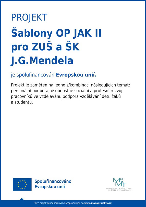 Projekt Šablony OP JAK II pro ZUŠ a ŠK J. G. Mendela