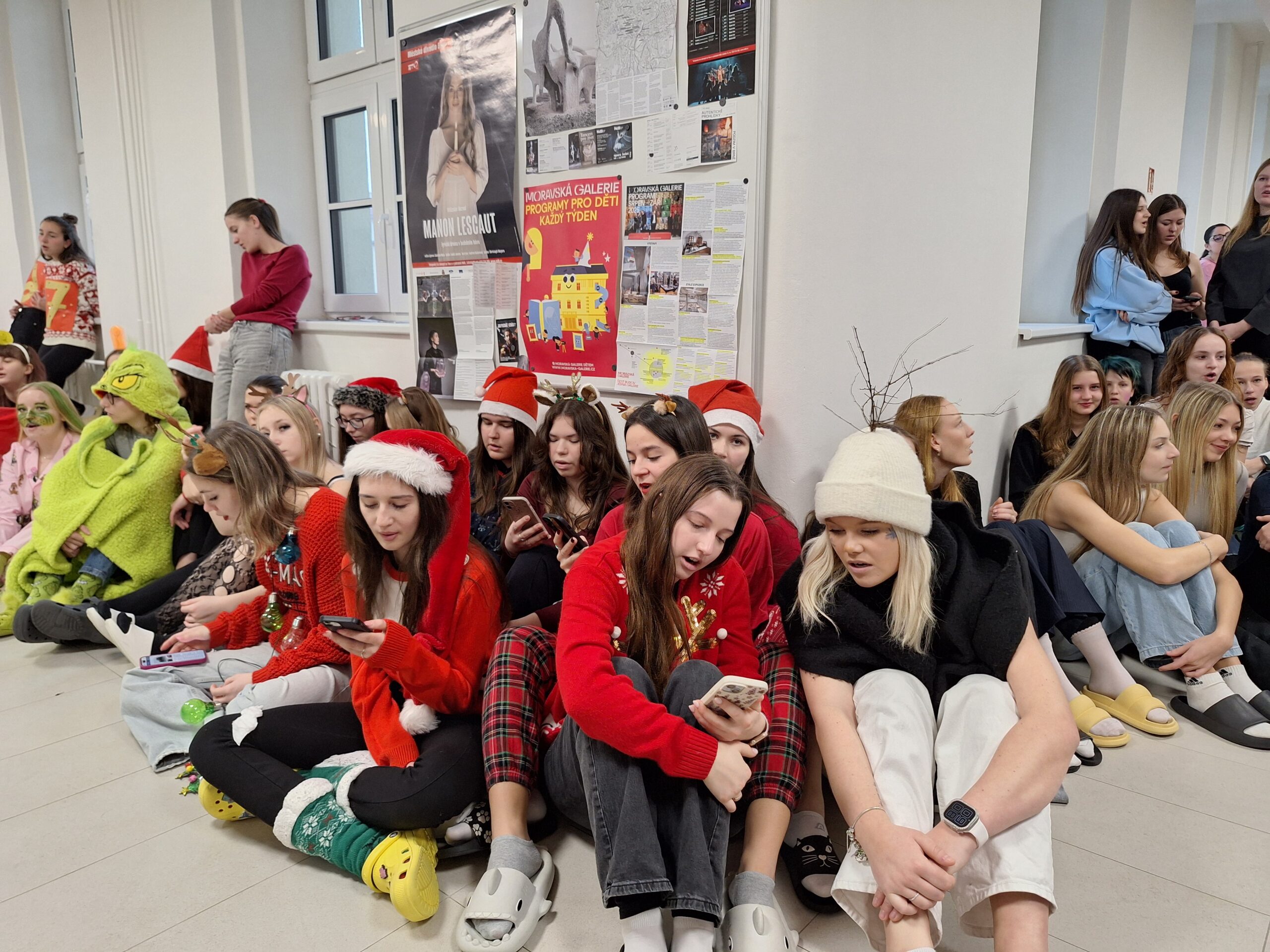 O pestrý program se postarala třída 1. AP, na housle hrála Barunka Krčková a na klavír doprovázel pan učitel Jakub Tvrzník. Všichni se tak svým zpěv a hrou podíleli na vytvoření příjemné předvánoční atmosféry, kterou jsme si společně užili.